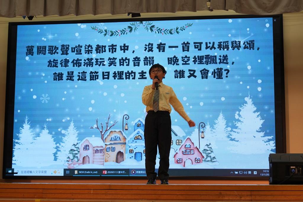 本校舉行第一屆「童年好聲音」詩歌分享會,同學們選出喜歡的詩歌與眾同分享,以歌聲讚揚上帝,聽眾們也十分陶醉,場面熱鬧,活動最後在熱烈的掌聲中圓滿結束。
