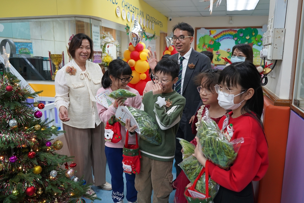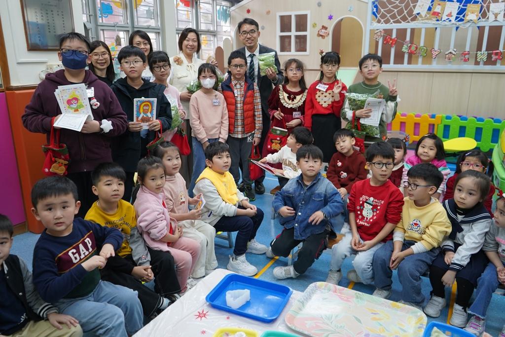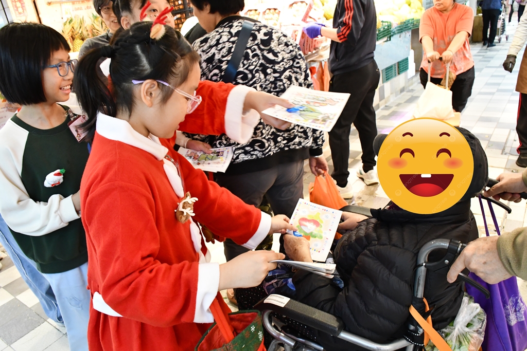 十二月十九日,本校基督小精兵放學後到商場、街市、長者中心及幼稚園報佳音,派發本校設計的福音單張、糖果及水耕蔬菜,讓區內街坊都能感受到聖誕節的意義和