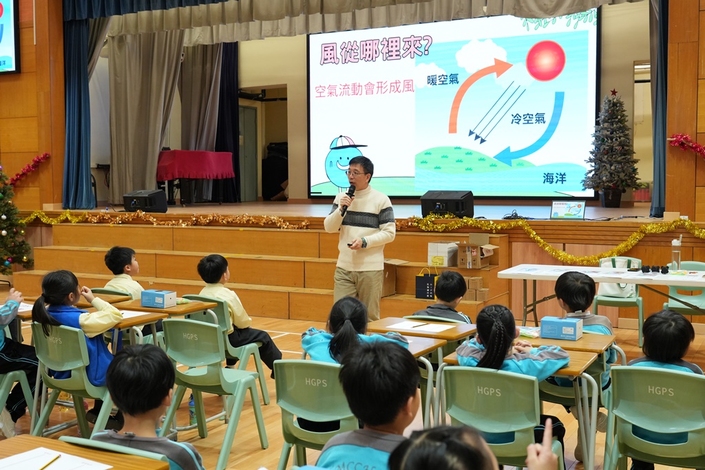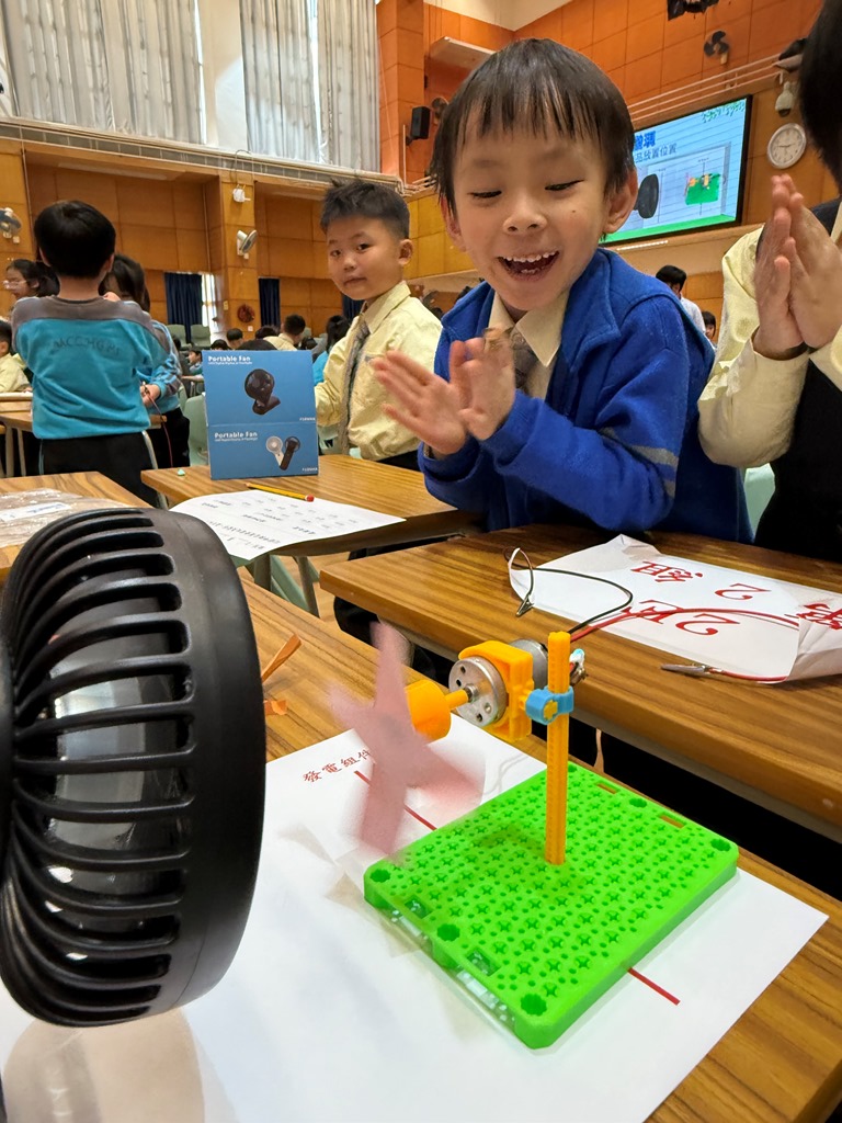 《空氣超人大挑戰(3)》帶領小二學生探索風力發電的奧秘。活動從風的形成引入,透過動手組裝發電模型,讓學生理解風能如何轉換為電能。活動中,學生測試不同扇葉長度對發電效果的影響,在實驗中學習科學探究與團隊合作,並建立珍惜再生能源的環保意識。
