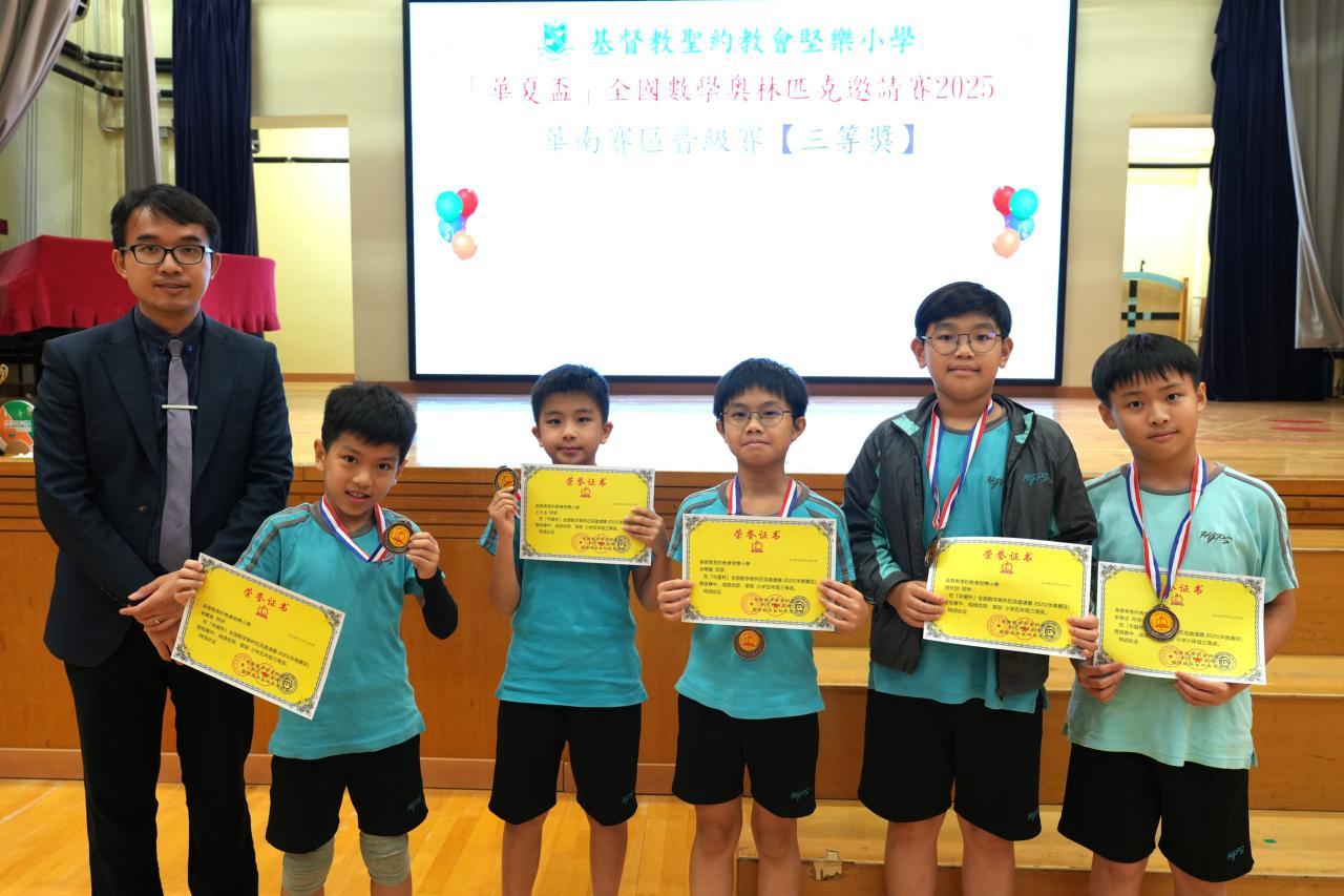 設立「奧數培訓班」,為數學能力較佳的高年級學生,提供課程以外的奧數訓練,並推薦他們參加校外比賽。另外,從高年級學生挑選「數學大使」,協助進行數學活動,加強校園關愛互助氣氛。