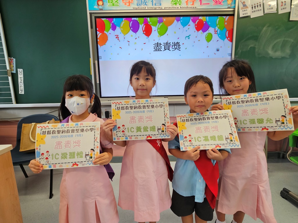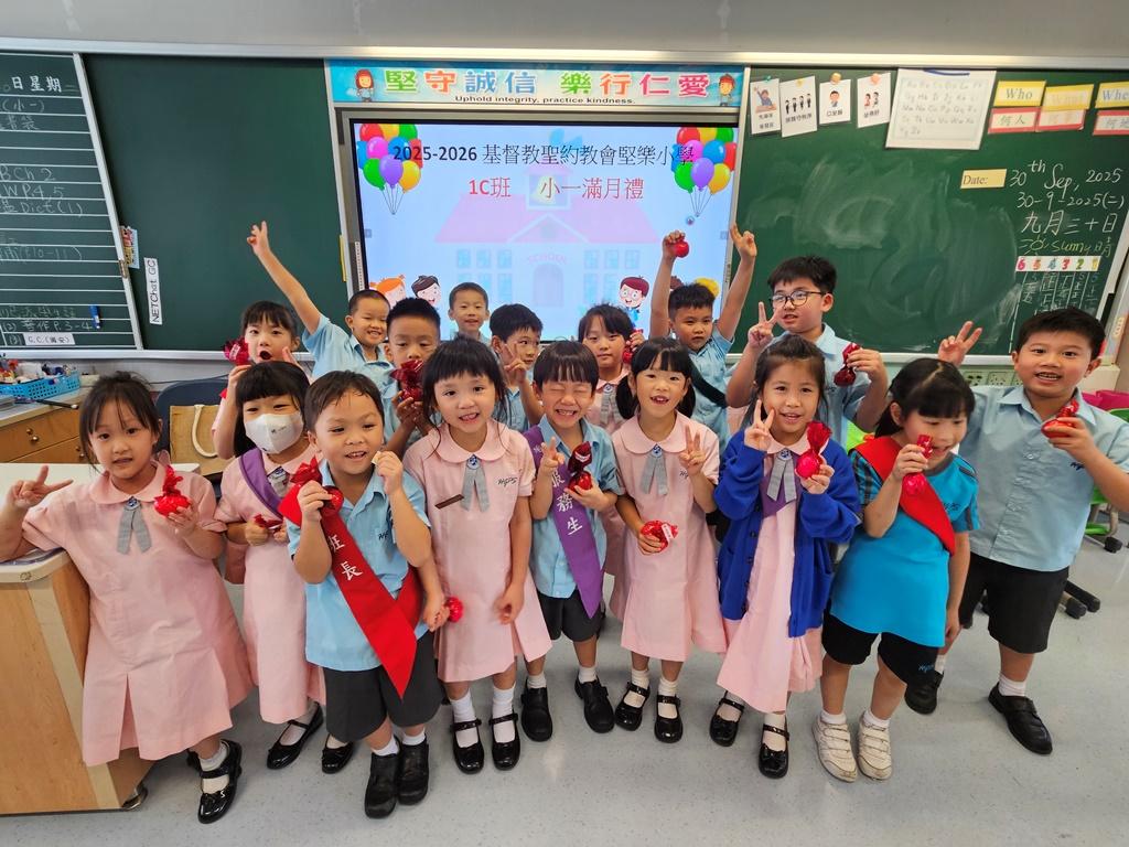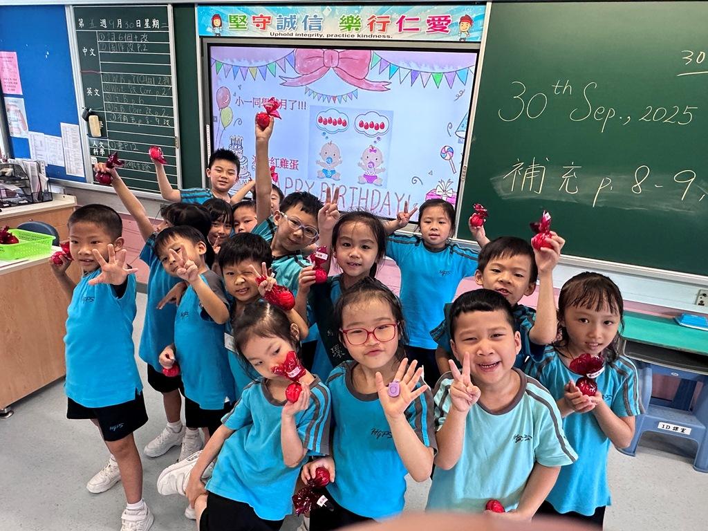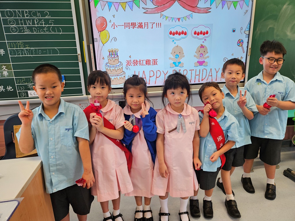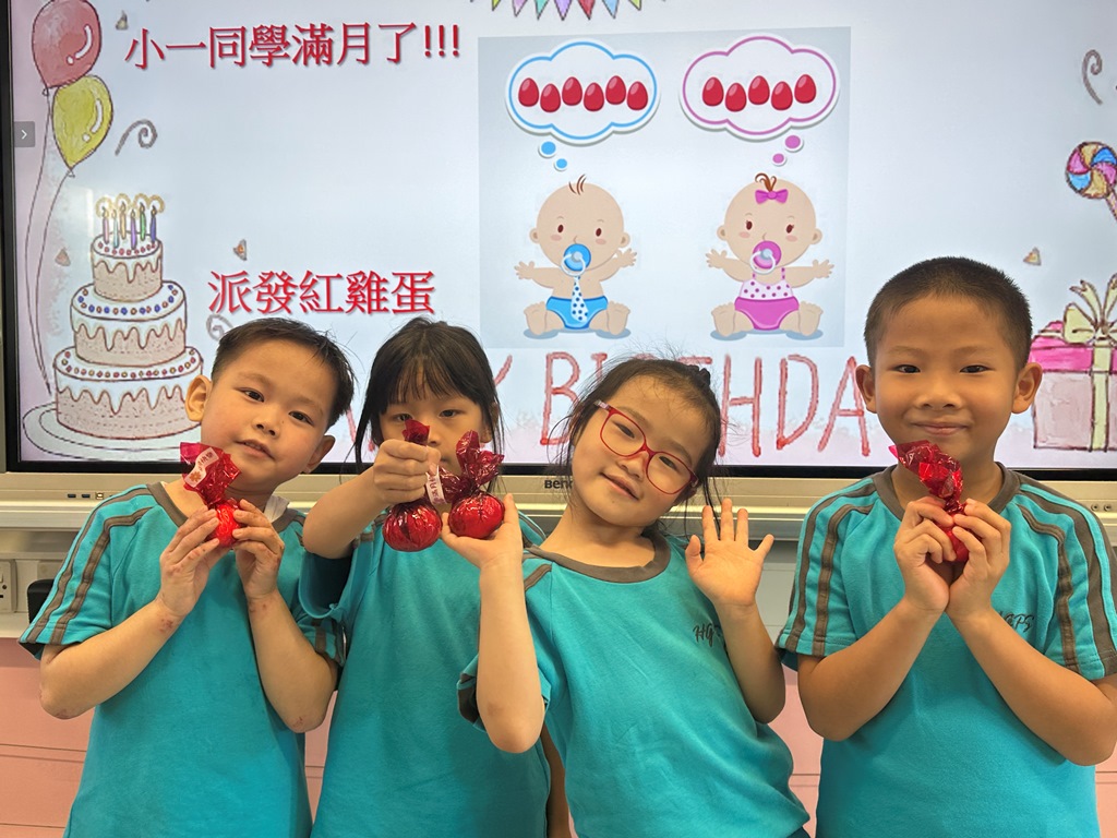 小一同學們在堅樂小學已經一個月,看見小一同學們不論在學習、自理方面都有所成長,並且透入校園生活。本校特別舉辦「小一滿月禮」,送贈紅雞蛋祝賀每位小一同學。祝福他們健康成長,快樂地享受校園生活。