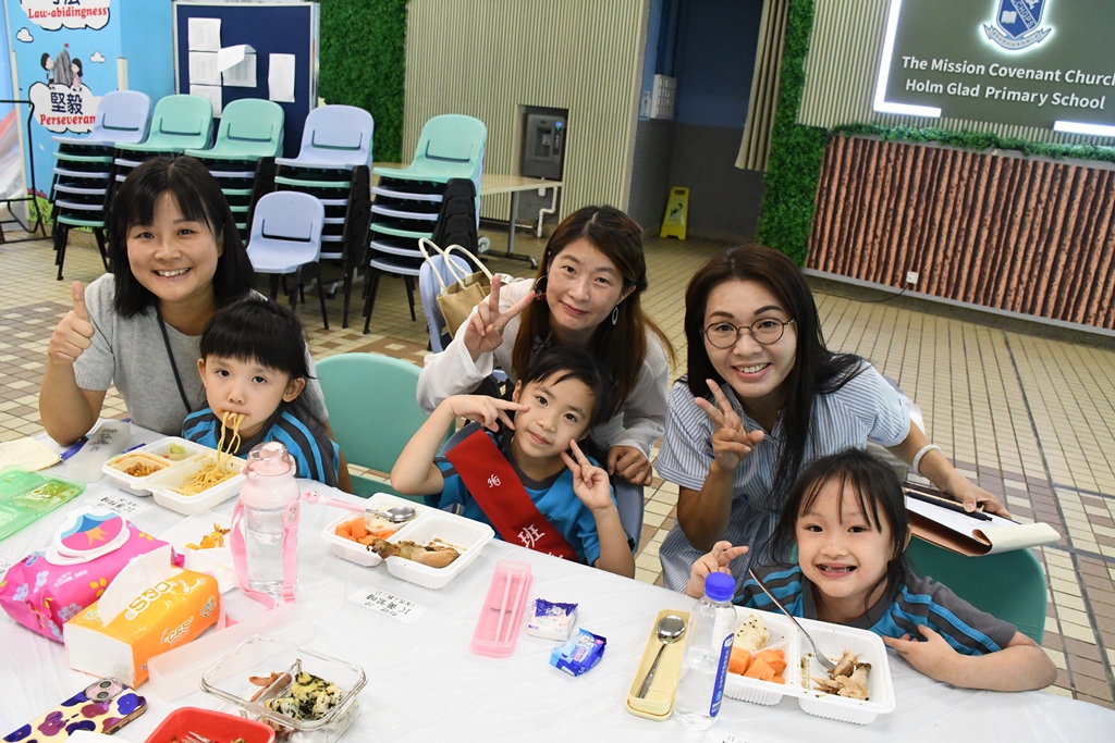 午膳過後,我們為家長及小一學生們安排了一些親子遊戲,活動不但能增進親子間的感情,還能讓孩子們在遊戲中學習團隊合作與創意思維。