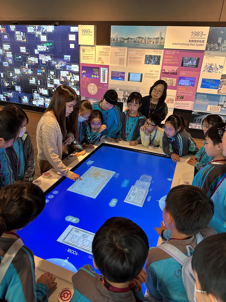 本校安排五年級學生參觀香港金融管理局資訊中心。學生透過豐富的電子互動環節及實物展示,例如近距離觀察不同銀行的鈔票、紀念鈔及硬幣,深入探索香港貨幣的歷史與發展。活動生動有趣,不僅加深了學生對貨幣價值的理解,更提升了他們的理財意識及對金融知識的興趣。