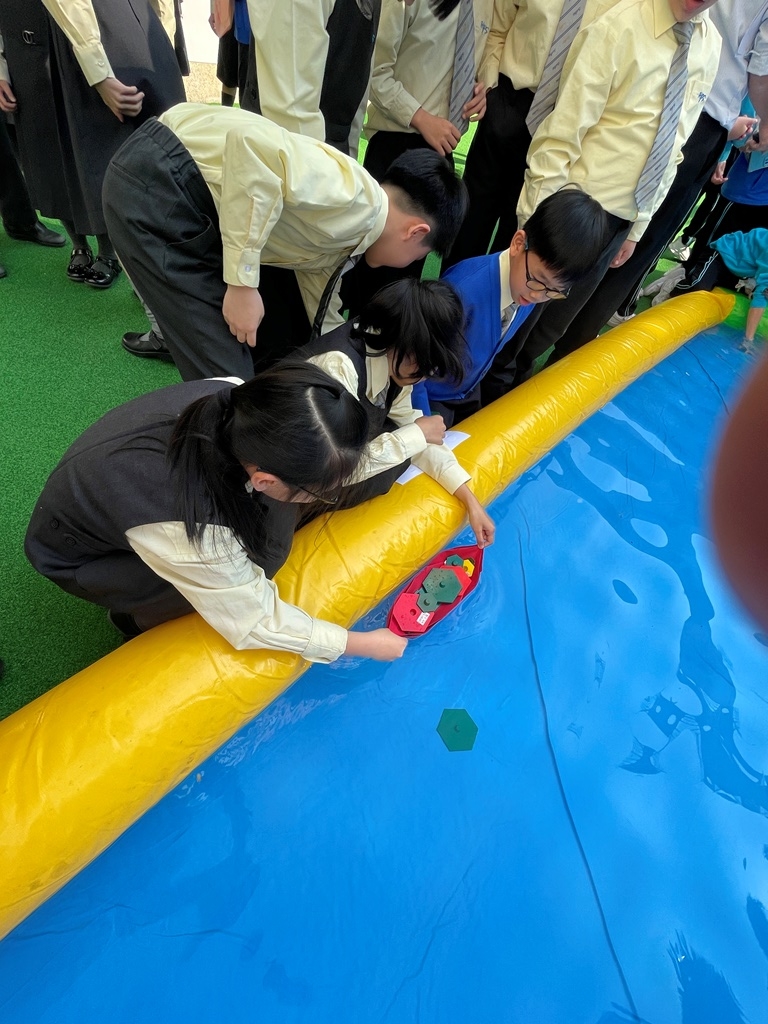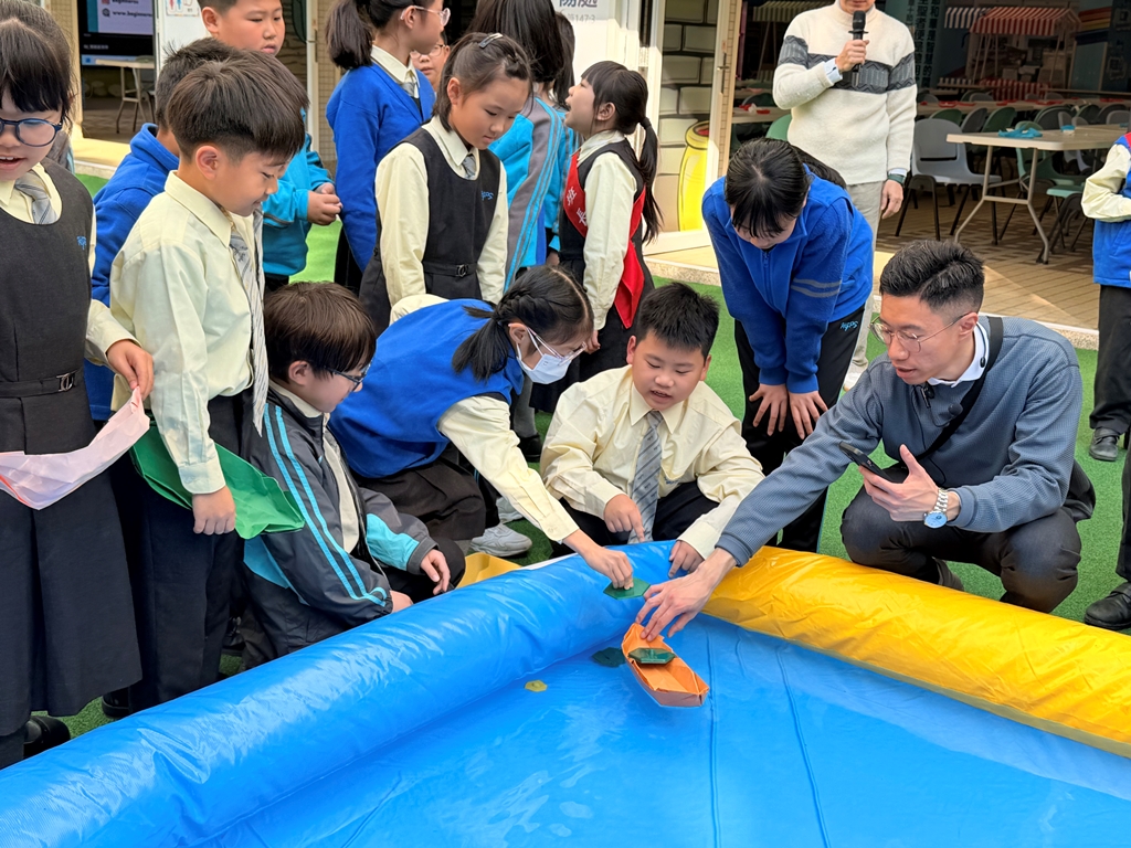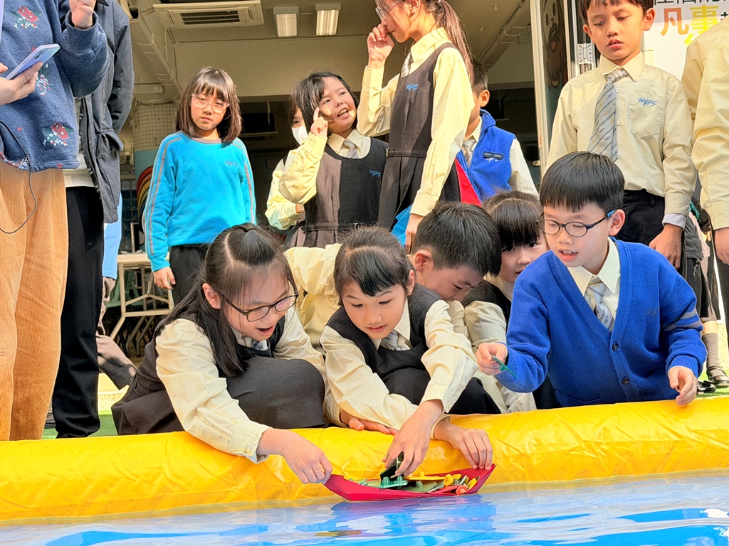 《H2O特工隊(3)》學生化身小小科學家,運用浮力知識,設計並製作紙船,測試其在水中的最大載重量。活動中,學生需反覆改良紙船形狀與摺法,從失敗中學習,逐步理解物體漂浮的原理。透過小組競賽,培養解難能力與團隊合作精神,體會科學探究的樂趣與實踐精神。
