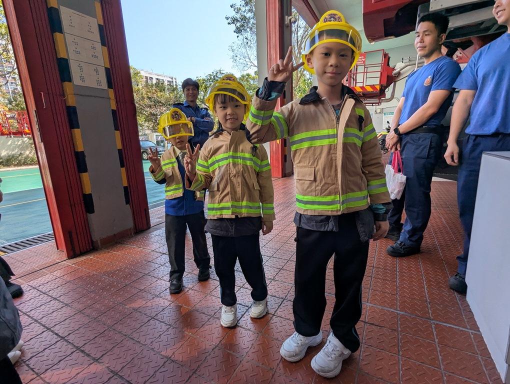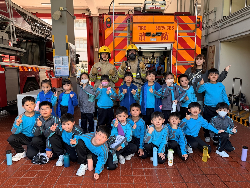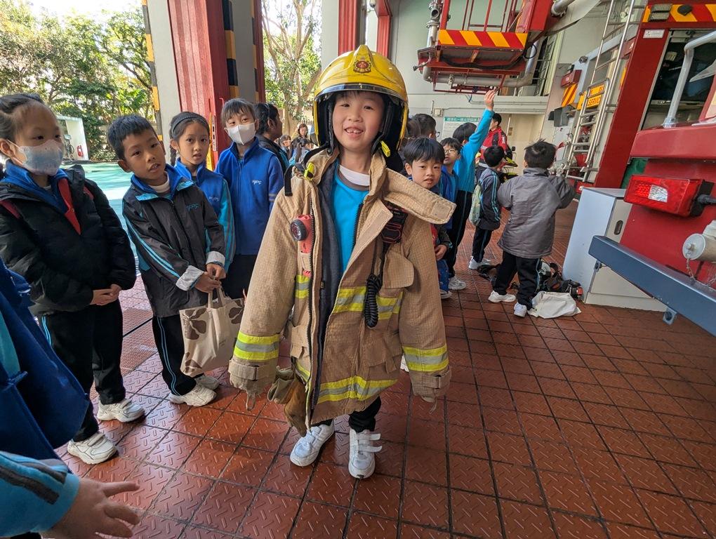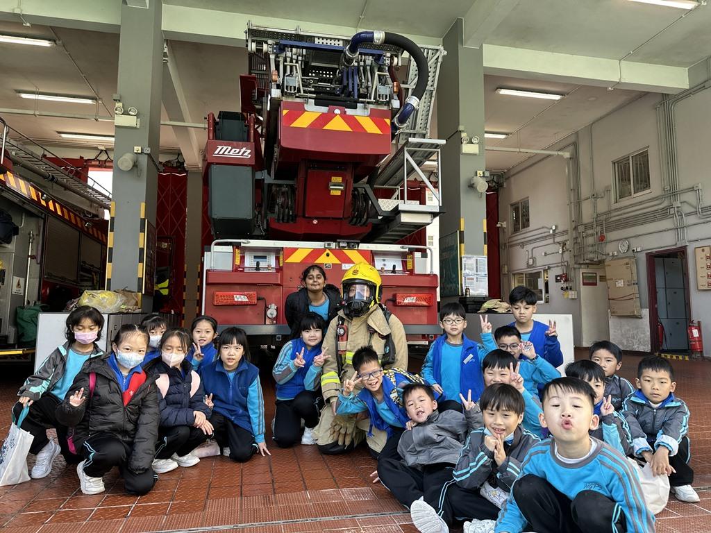 常識科於二月份安排二年級同學參觀順利消防局。透過參觀,同學們認識了各種消防車、大型水槍、消防斧等消防器材的功能和使用方法。此外,同學們更能試穿消防員工作時的防護裝備,了解到消防員在火場中工作的辛勞與英勇,均對消防員表示無限的感謝和尊重。