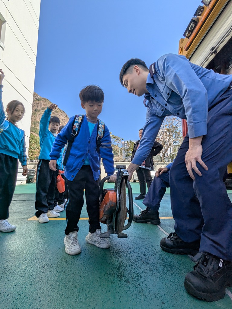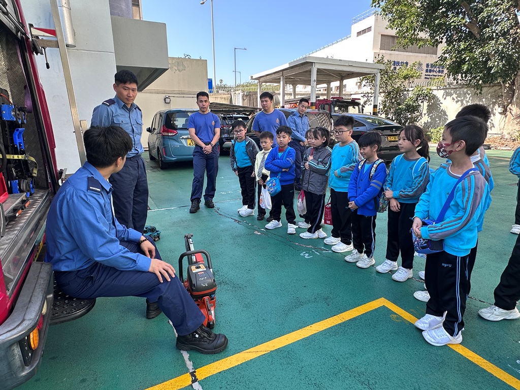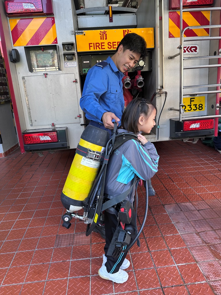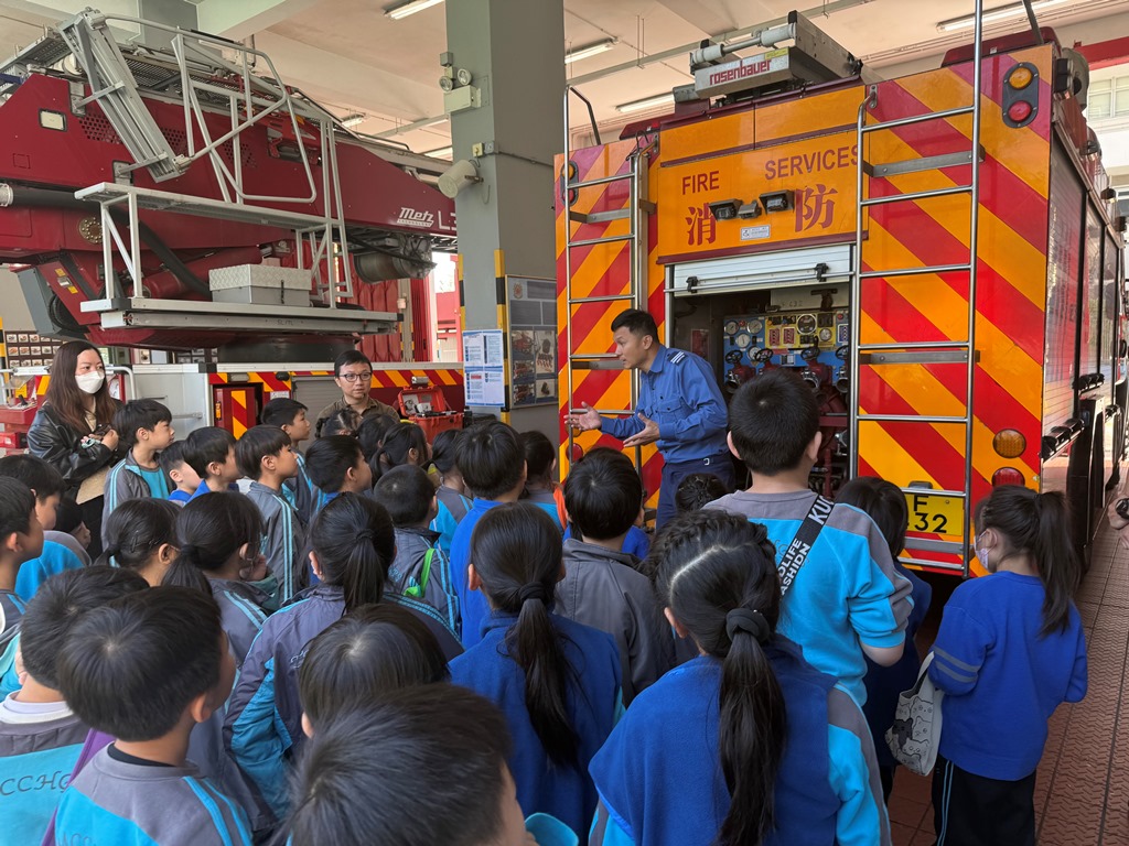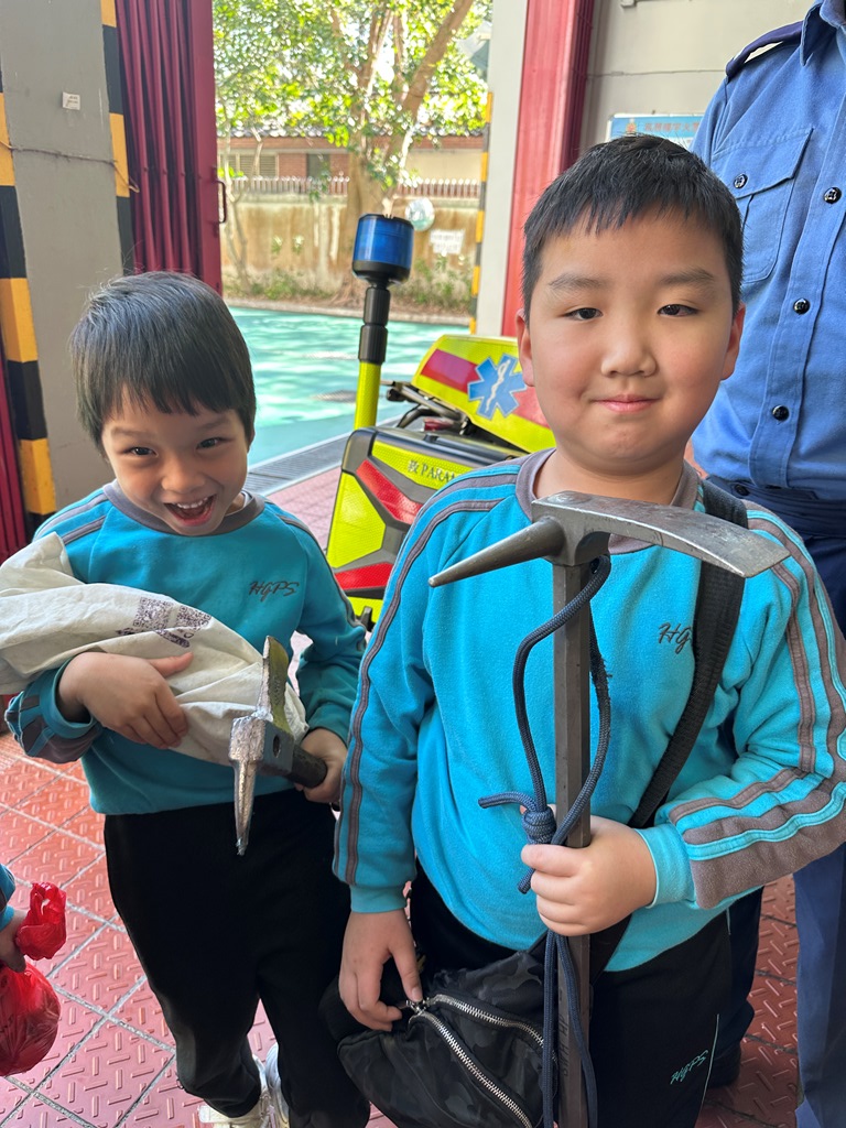 常識科於二月份安排二年級同學參觀順利消防局。透過參觀,同學們認識了各種消防車、大型水槍、消防斧等消防器材的功能和使用方法。此外,同學們更能試穿消防員工作時的防護裝備,了解到消防員在火場中工作的辛勞與英勇,均對消防員表示無限的感謝和尊重。