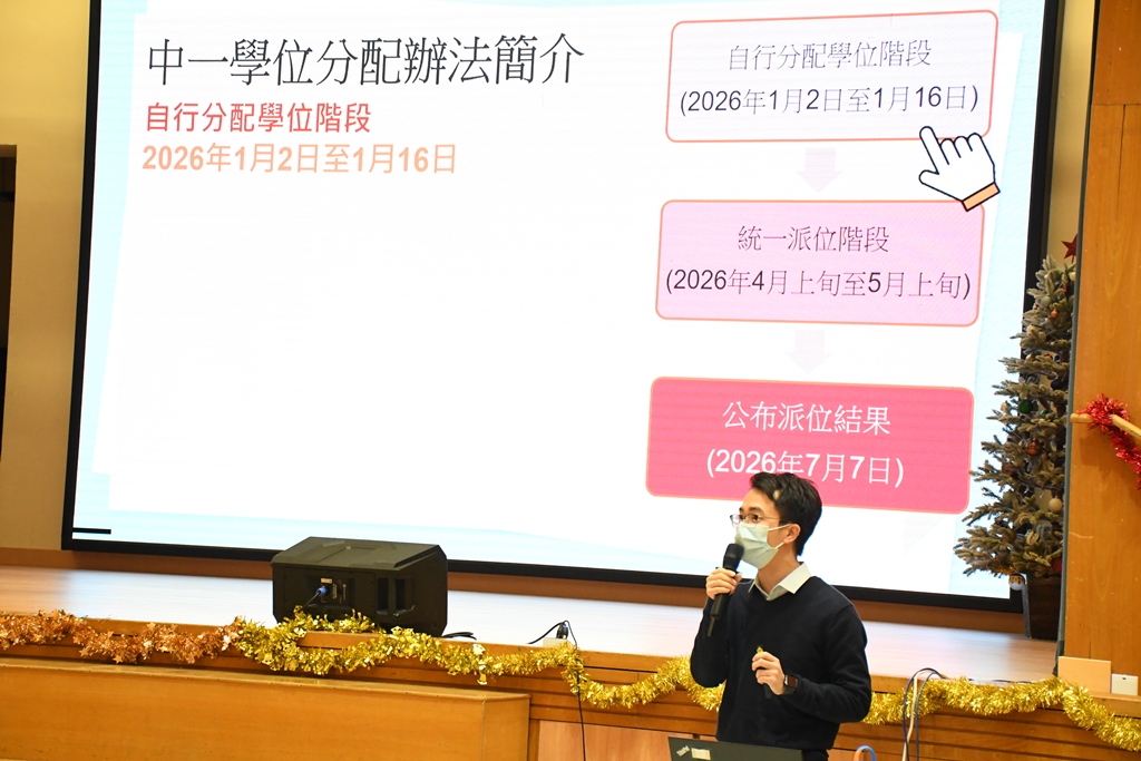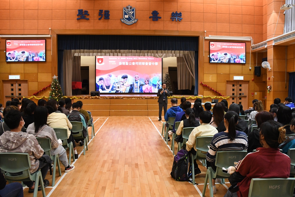 12月9日(星期二)香港聖公會何明華會督中學金校長以及老師和同學親臨本校向小學六年級的學生及家長進行升中講座。講座先由何健衡主任介紹「自行分配學位安排」,然後由金校長簡介該中學的概況以及面對中學面試的技巧。我們希望透過是次講座能讓同學和家長增加他們對升中資訊的認識,減少對升學的憂慮,希望各位小六學生都能順利升讀心儀中學。