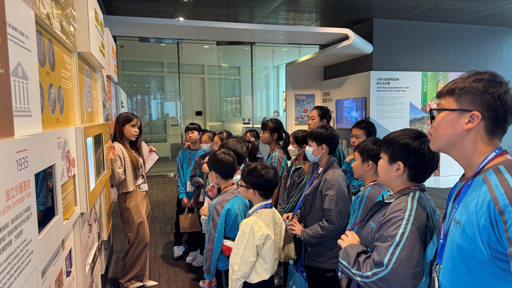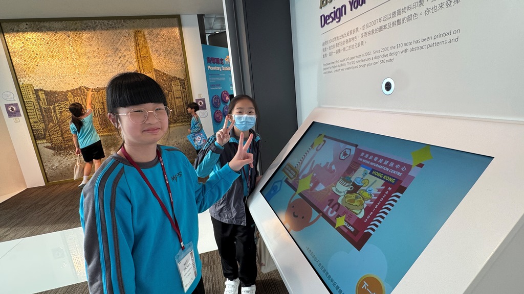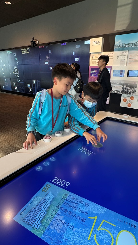 本校安排五年級學生參觀香港金融管理局資訊中心。學生透過豐富的電子互動環節及實物展示,例如近距離觀察不同銀行的鈔票、紀念鈔及硬幣,深入探索香港貨幣的歷史與發展。活動生動有趣,不僅加深了學生對貨幣價值的理解,更提升了他們的理財意識及對金融知識的興趣。
