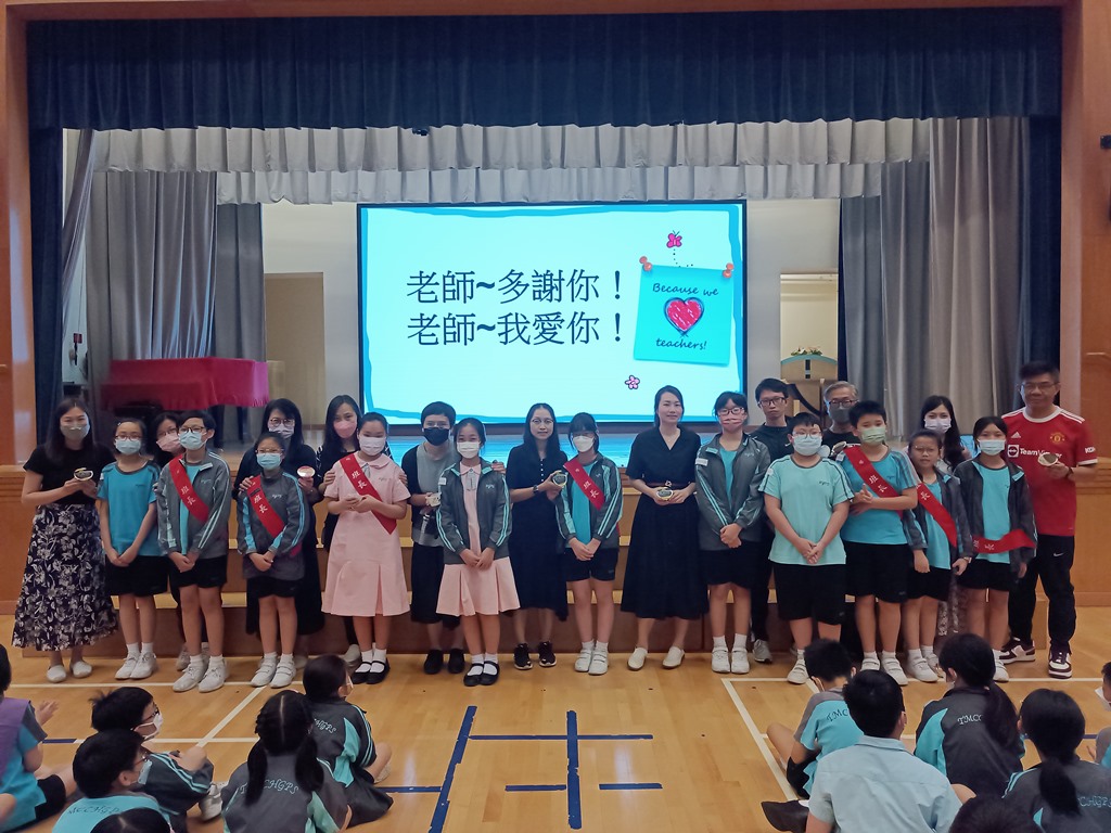 小四至小六敬師週會帶出尊敬師長精神,讓同學更多明白老師背後工作以及學習欣賞他人特質,欣賞同學在週會過程表現投入勇於回應,最後班代表為老師送上禮物,謝謝老師的教導。