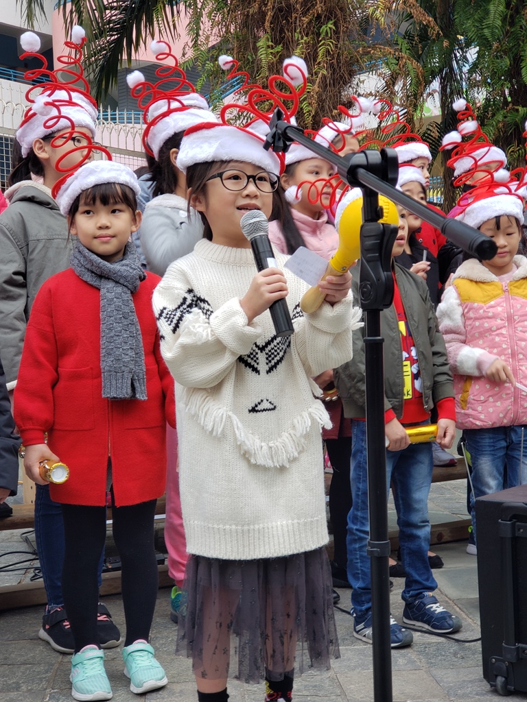 為慶祝耶穌降生,我校舉辦聖誕崇拜及慶祝會。早上,我校學生在校門外獻唱詩歌,向家長及附近居民傳廣耶穌為我們降生的大好消息。接著,可喜可樂之城團隊到校分享信息;另一方面,老師與學生在教室裏舉行聯歡會,慶祝這個充滿愛的節日。
