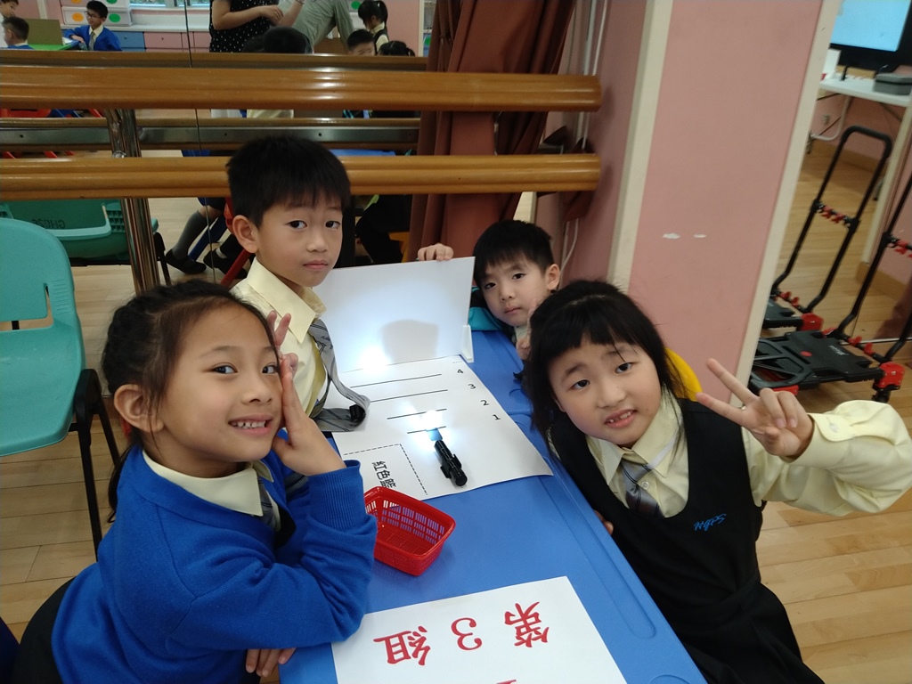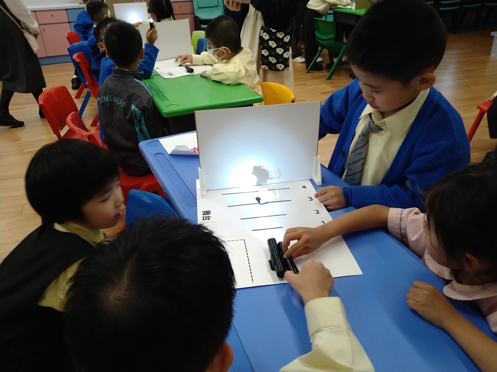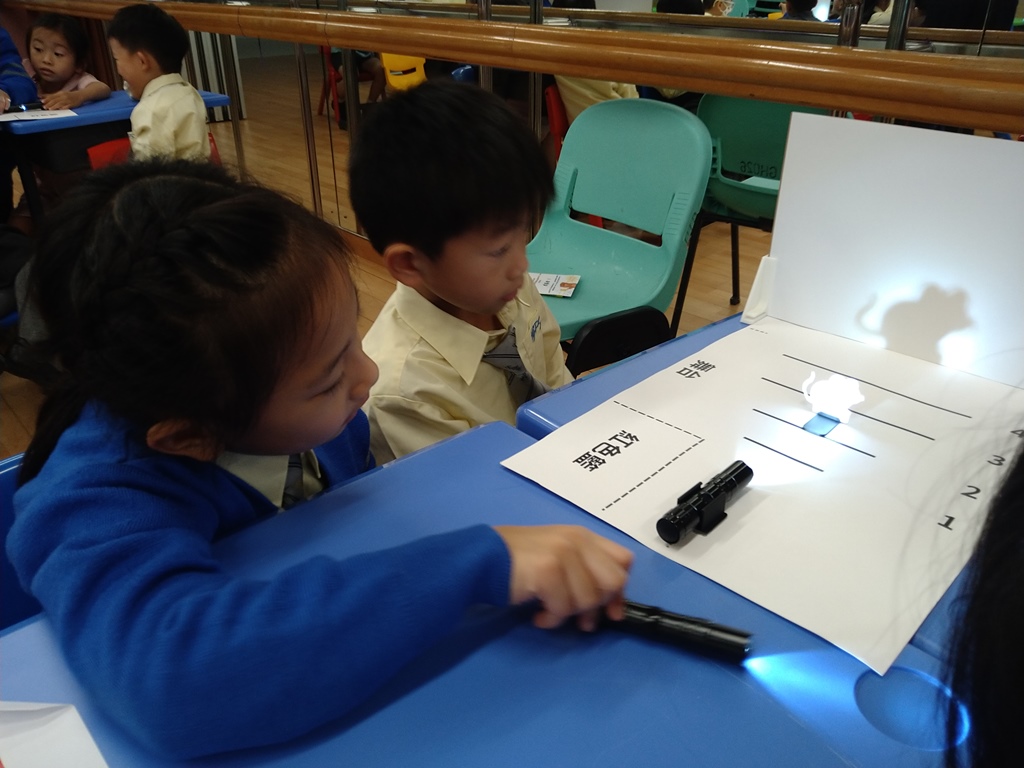 一年級(1A、1B)的「光影小偵探」聯課活動,由可觀自然教育中心暨天文館的導師帶領同學進行「影子大師」活動,讓同學通過遊戲與實驗,觀察影子的形成與變化,從而認識光沿直線傳播以及光、物體與影子關係的基本原理。