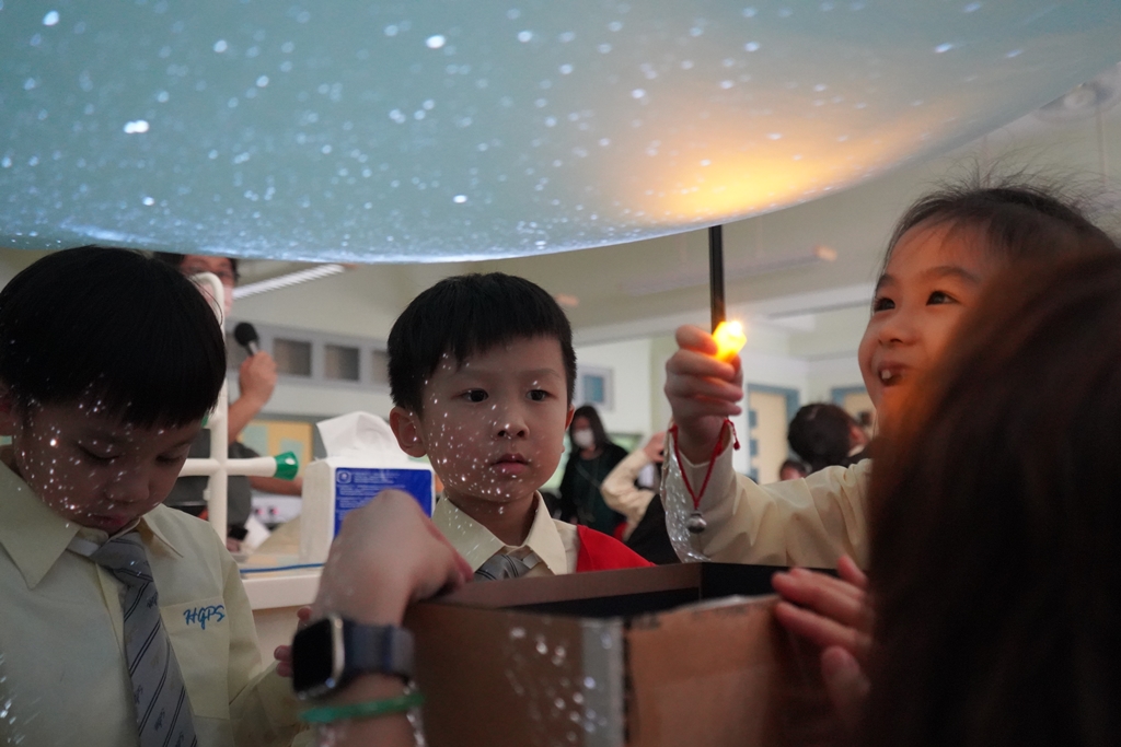 一年級(1C、1D)的「光影小偵探」聯課活動,由可觀自然教育中心暨天文館的導師帶領同學進行「星星守護者」活動。通過生動的講解與互動,同學們學習了光在宇宙中的傳播以及星星作為遙遠光源的基本原理,並初步體驗了天文觀測的樂趣。
