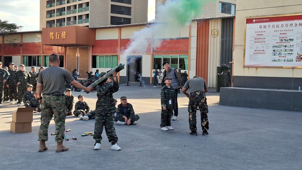 軍訓第二天同學體驗了不同的軍訓練: 攀爬、 攻防箭、 槍械射擊及發射火箭炮等。 大家過了充實又刺激的一天。
