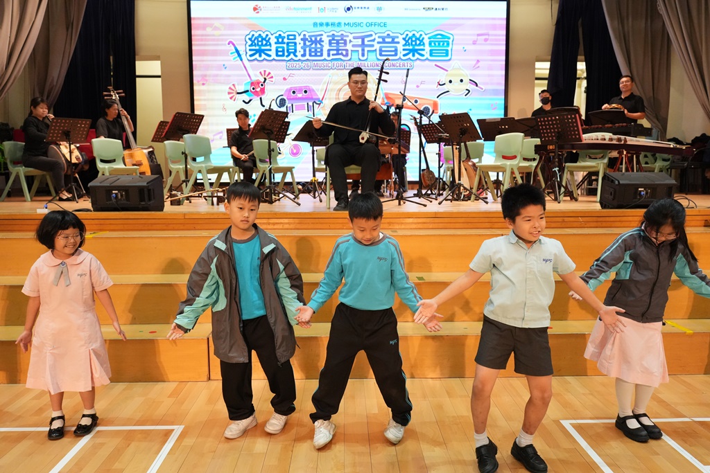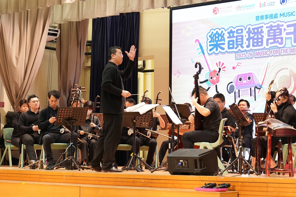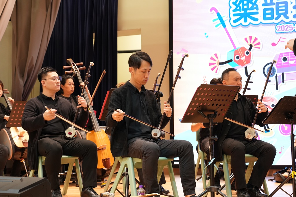 為提升學生對器樂及中國文化特色的興趣,學校邀請了音樂事務處導師中樂小組於十一月十三日到校舉行《樂韻播萬千》音樂會。導師們介紹了不同中國樂器的音色、發聲方式和演奏技巧,以精湛的技藝奏出傳統和流行等多元化的樂曲,令同學們大開眼界、獲益良多。同學們更受邀到台前舞動,與樂手共同完成精彩絕倫的演出,實在是一次十分難忘的經歷!
