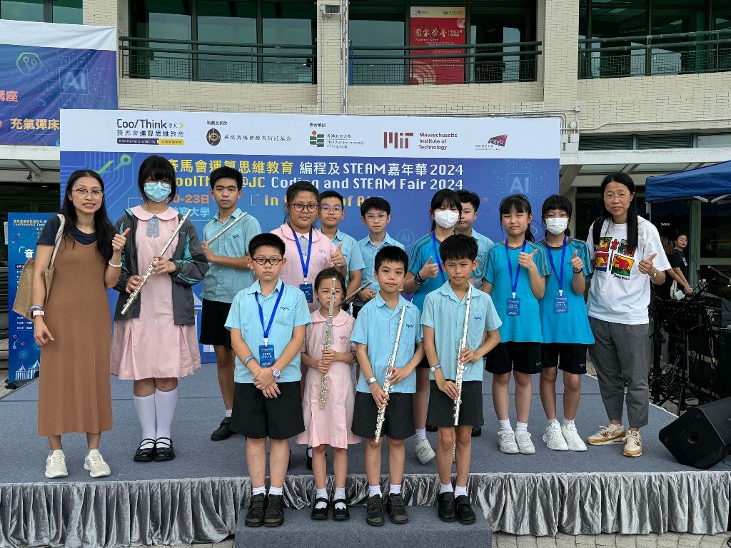 本校同學參加了編程及STEAM嘉年華2024,同學在活動中擺設屬於學校的攤位,同時參與六大互動專區、益智有趣的講座以及創新技術展示,親身體驗創科樂趣。管樂班的同學同場展示了今年的學習成果,同學們都樂在其中。