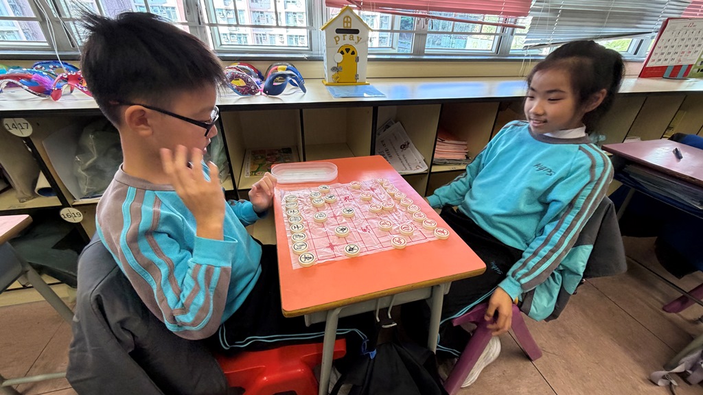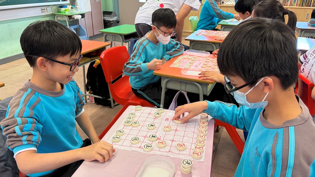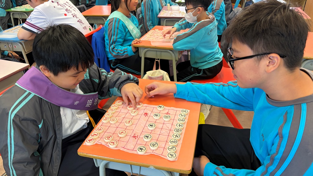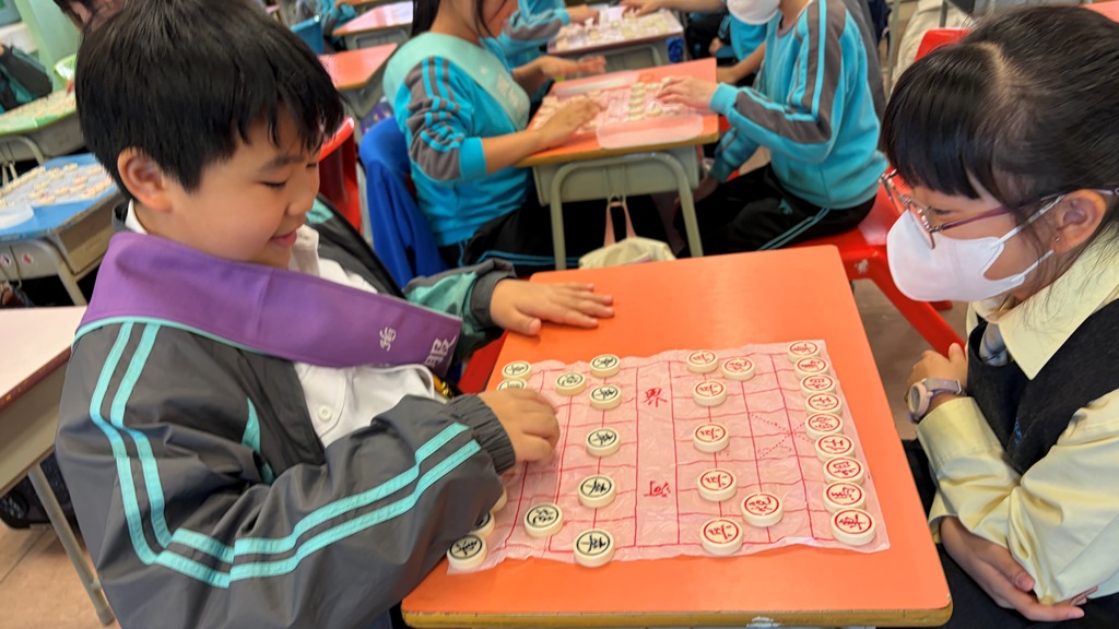 五年級「對弈思維訓練:中國象棋」(2)活動,引導學生在棋盤攻防間學習策略思維與邏輯推理,鍛煉專注力與全局規劃能力,同時領略傳統棋藝文化魅力。