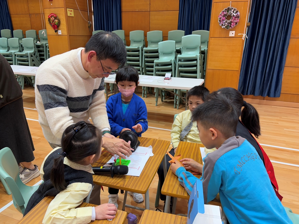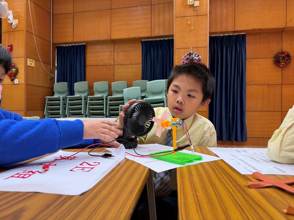 《空氣超人大挑戰(3)》帶領小二學生探索風力發電的奧秘。活動從風的形成引入,透過動手組裝發電模型,讓學生理解風能如何轉換為電能。活動中,學生測試不同扇葉長度對發電效果的影響,在實驗中學習科學探究與團隊合作,並建立珍惜再生能源的環保意識。
