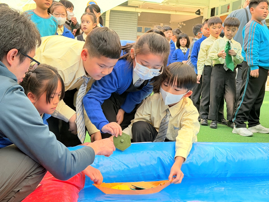 《H2O特工隊(3)》學生化身小小科學家,運用浮力知識,設計並製作紙船,測試其在水中的最大載重量。活動中,學生需反覆改良紙船形狀與摺法,從失敗中學習,逐步理解物體漂浮的原理。透過小組競賽,培養解難能力與團隊合作精神,體會科學探究的樂趣與實踐精神。