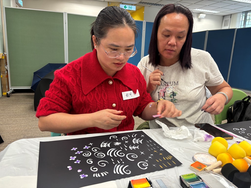 2024-2025年度參與臉部彩繪班的家長們學有所成、累積經驗。一年之後,彩繪家長義工們擔任導師,義務指導其他家長掌握彩繪技巧! 家長們互助互學,彼此持續學習、自我增值,同時擴大家長義工團隊,讓更多成員能在校內活動中提供彩繪義工服務,以所長貢獻學校,體現家校合作與回饋精神!