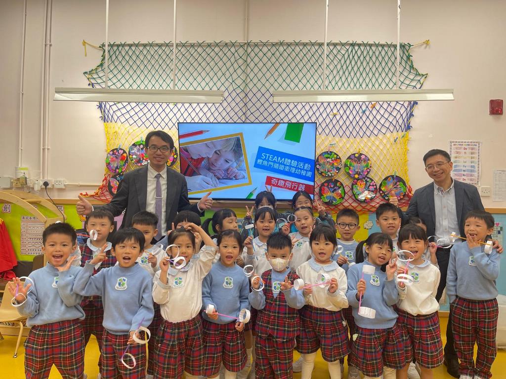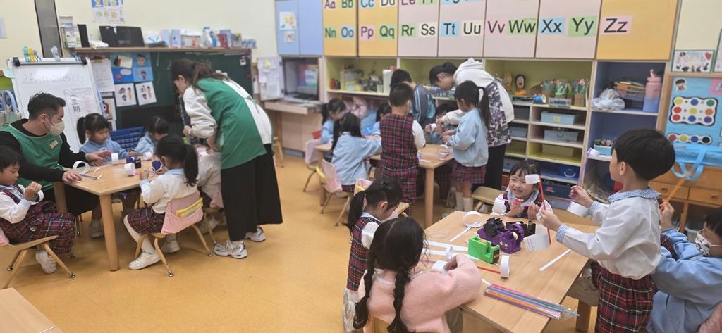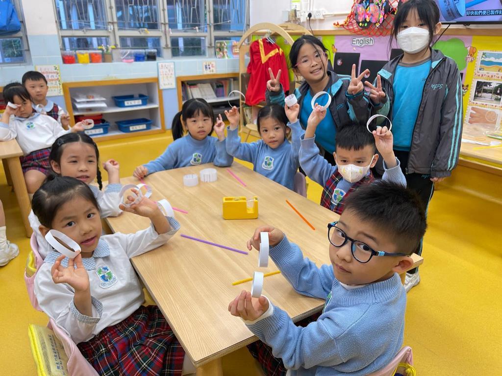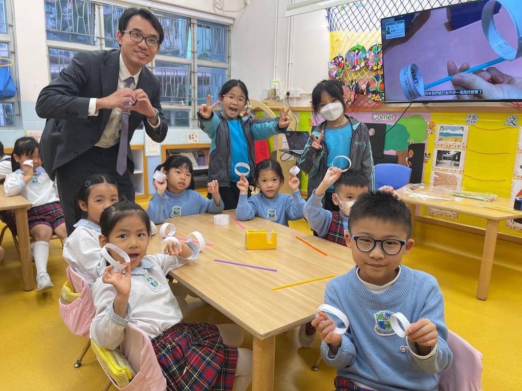 11月26日(星期三)本校科學科及創科組的老師和同學代表跟幼稚園同學進行「神奇飛行器」的製作,從動手做的小實驗了解空氣流動原則。孩子們投入參與,認真學習。