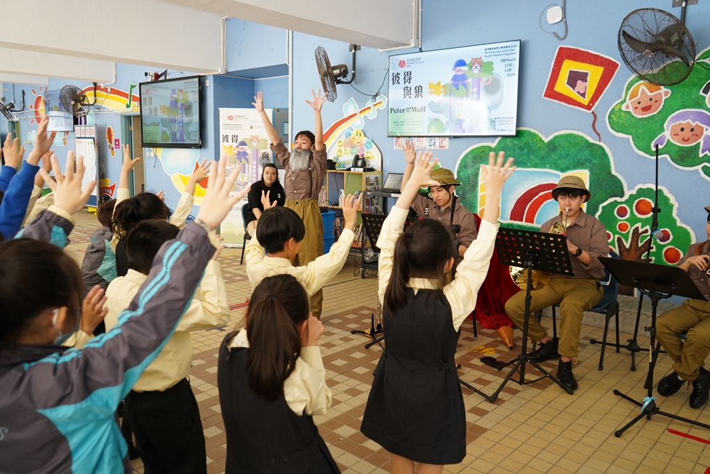 本校獲邀觀賞由香港藝術節2024主辨的學生專享節目《彼得與狼》音樂會,讓學生觀賞由韓經arte愛樂樂團的國際級優秀表演。在演出前,藝術節派了導師到學校為同學介紹在《彼得與痕》中出現的樂器。同學們享受聆聽音樂,除了認識樂器外,亦認識了音樂的長短、高低及強弱。