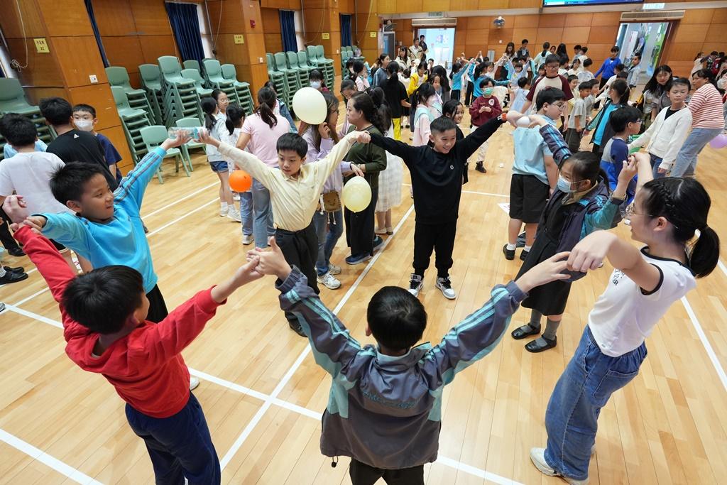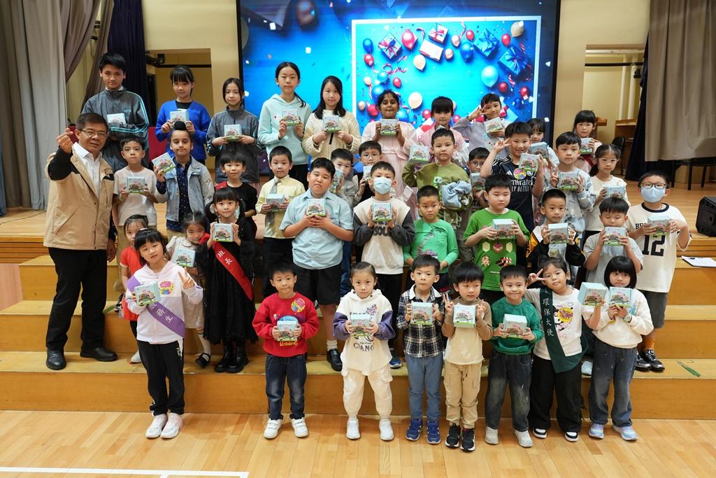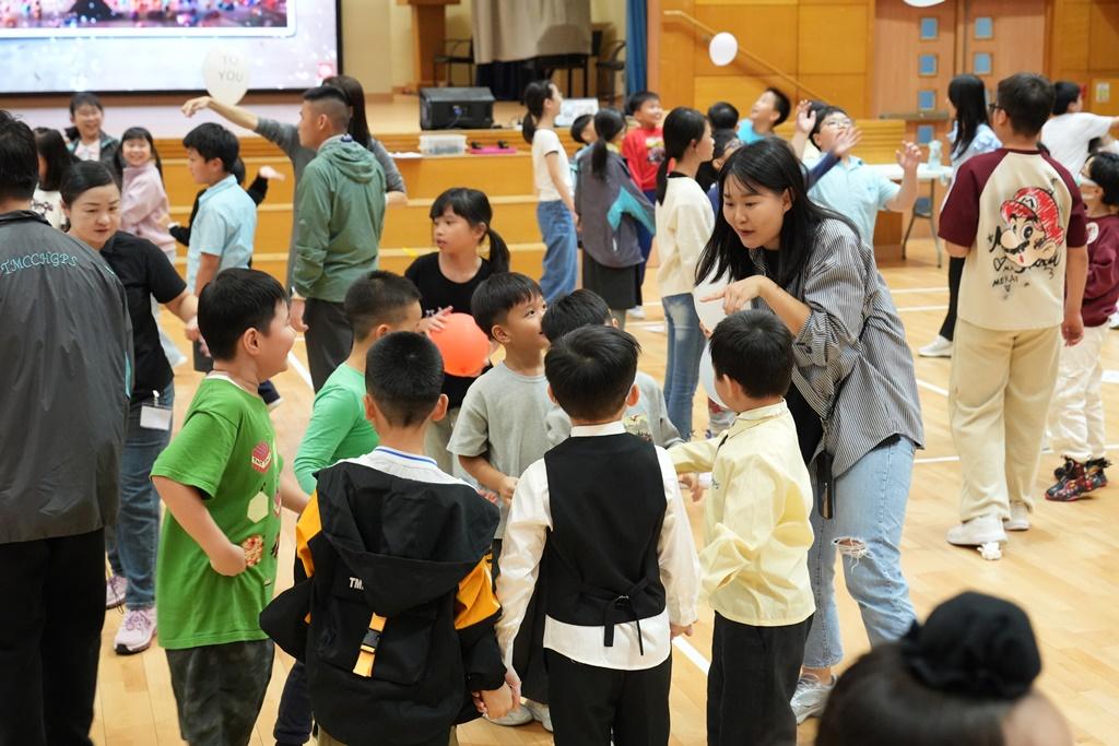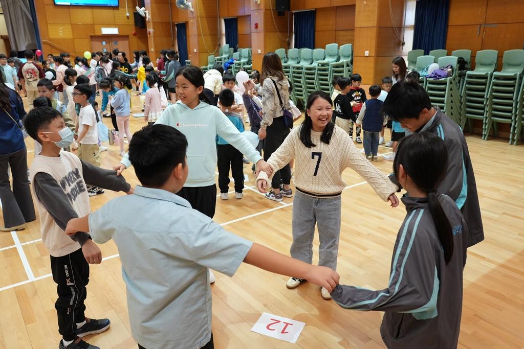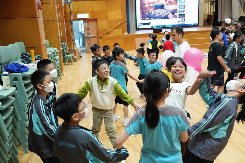 同學、社工、老師及家長義工一起玩遊戲,過了一個愉快的下午。同學們收到校舍模型玩具,十分開心。